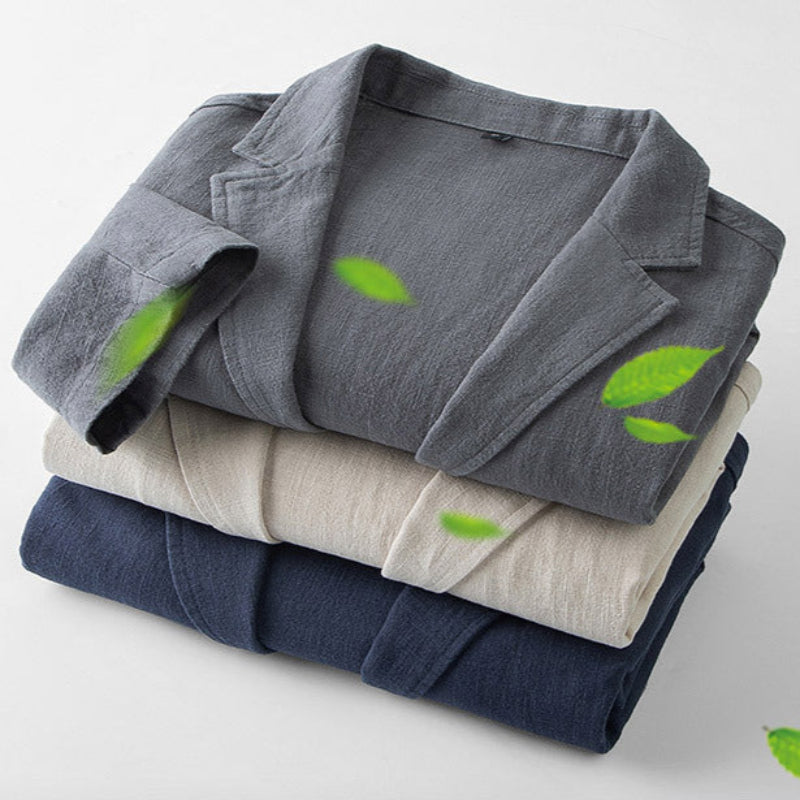 Crafted from pure Ramie, a fabric revered for centuries for its unmatched strength and breathability, this blazer embraces tradition with a modern sensibility. The raw, natural texture softens with wear, molding to your frame while maintaining its crisp structure.