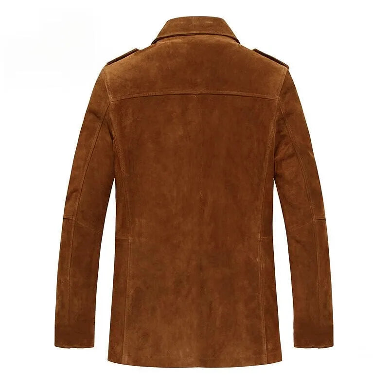 Our Devito Jacket combines a suede-like texture with unmatched sherpa softness, featuring bold epaulets, deep pocket flaps, and weather-worn buttons.